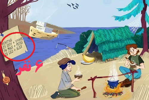 اگر به تصویر با دقت نگاه کنید، میتوانید فهرستی را که روی درخت داخل عکس کمپینگ قرار دارد، شناسایی کنید. در داخل لیست، می توانید نام 6 نفر را ببینید.