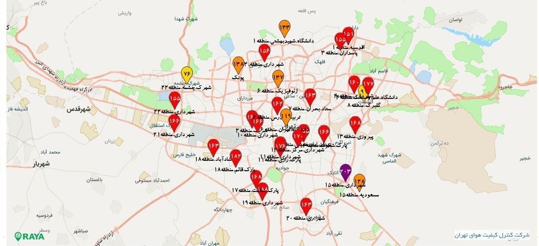درحال حاضر 22 ایستگاه در شرایط قرمز و ایستگاه منطقه 15 در شرایط بنفش است.