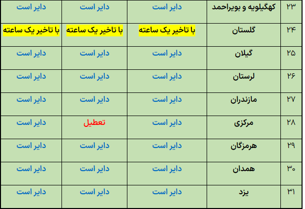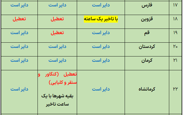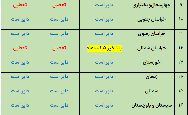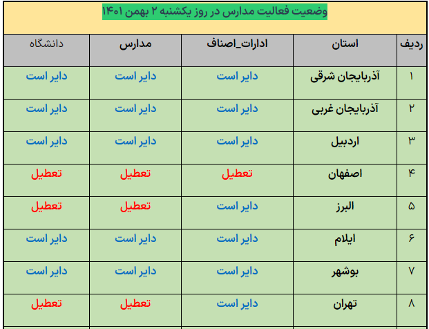 مدارس و ادارات این استان ها فردا 2 بهمن 1401 تعطیل است