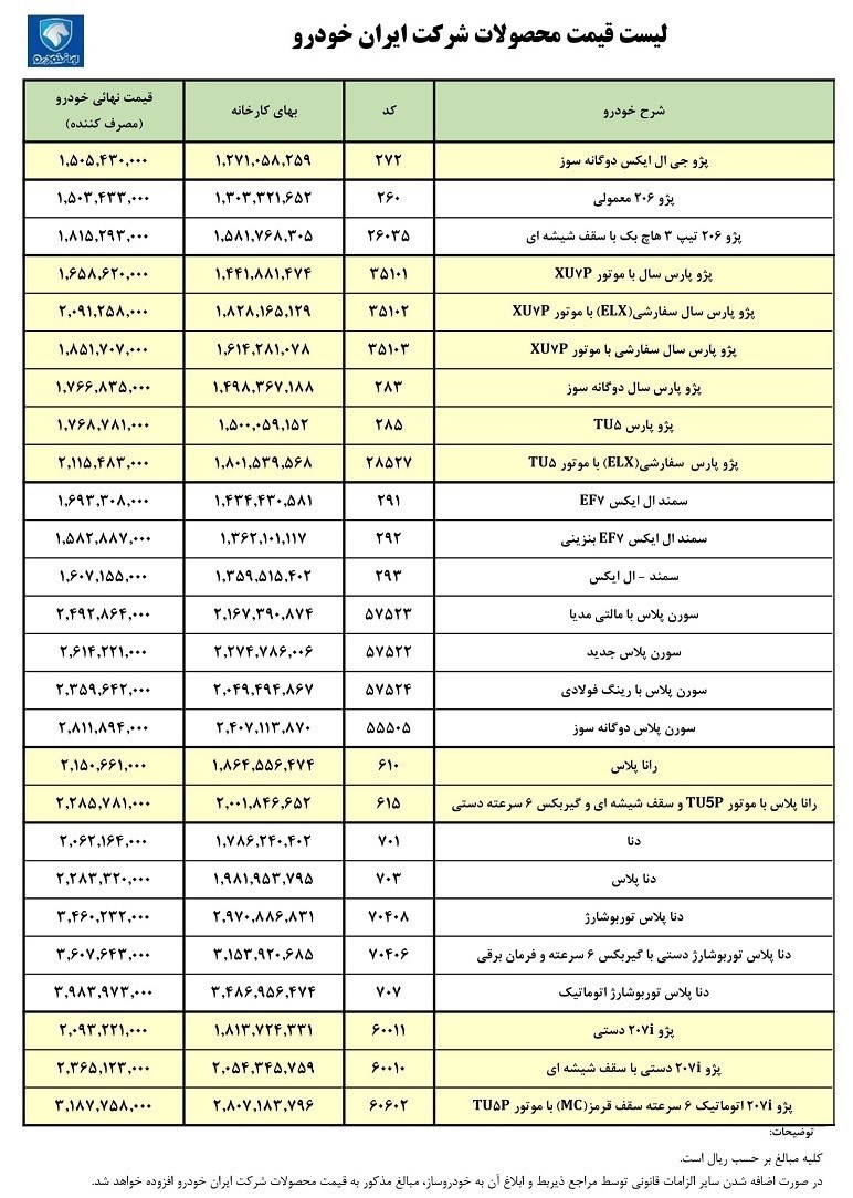 شرکت ایران خودرو قیمت رسمی محصولات خود را ویژه بهمن ماه 1401 را اعلام کرد که در مقایسه با ماه های قبل تغییری نداشته است.