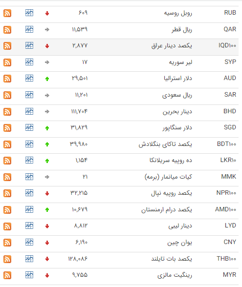 نرخ رسمی درهم امارات متحده عربی، ریال قطر و لیر سوریه هم بدون تغییر باقی ماند.