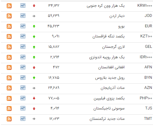 بر این اساس نرخ رسمی یورو، دینار کویت و ریال عمان افزایش و نرخ پوند انگلیس، لیر ترکیه و یکصد ین ژاپن کاهش یافت.