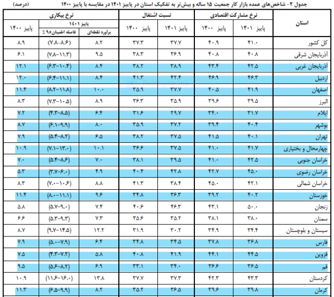 نرخ بیکاری این استان ها در پاییز ۱۴۰۱ کاهش یافت