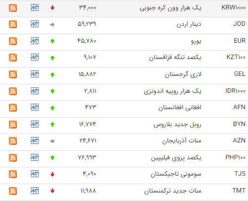 بانک مرکزی امروز پنجشنبه، نرخ رسمی ۴۶ ارز را اعلام کرد که بر اساس آن نرخ ۲۴ ارز افزایش و نرخ ۱۱ ارز کاهش یافت، نرخ باقی ارزها ثابت ماند.