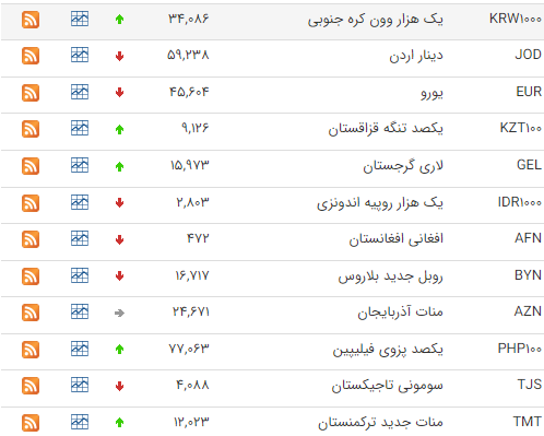 هر یوان چین نیز ۴۱ هزار و ۶۳۷ ریال خریداری و ۴۲ هزار و ۱۶ ریال به فروش رسید.