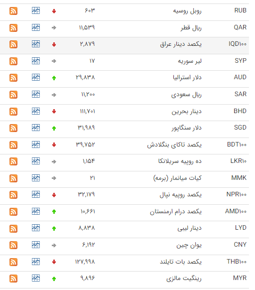 نرخ رسمی درهم امارات متحده عربی، يوان چين و لیر ترکیه هم بدون تغییر ماند.