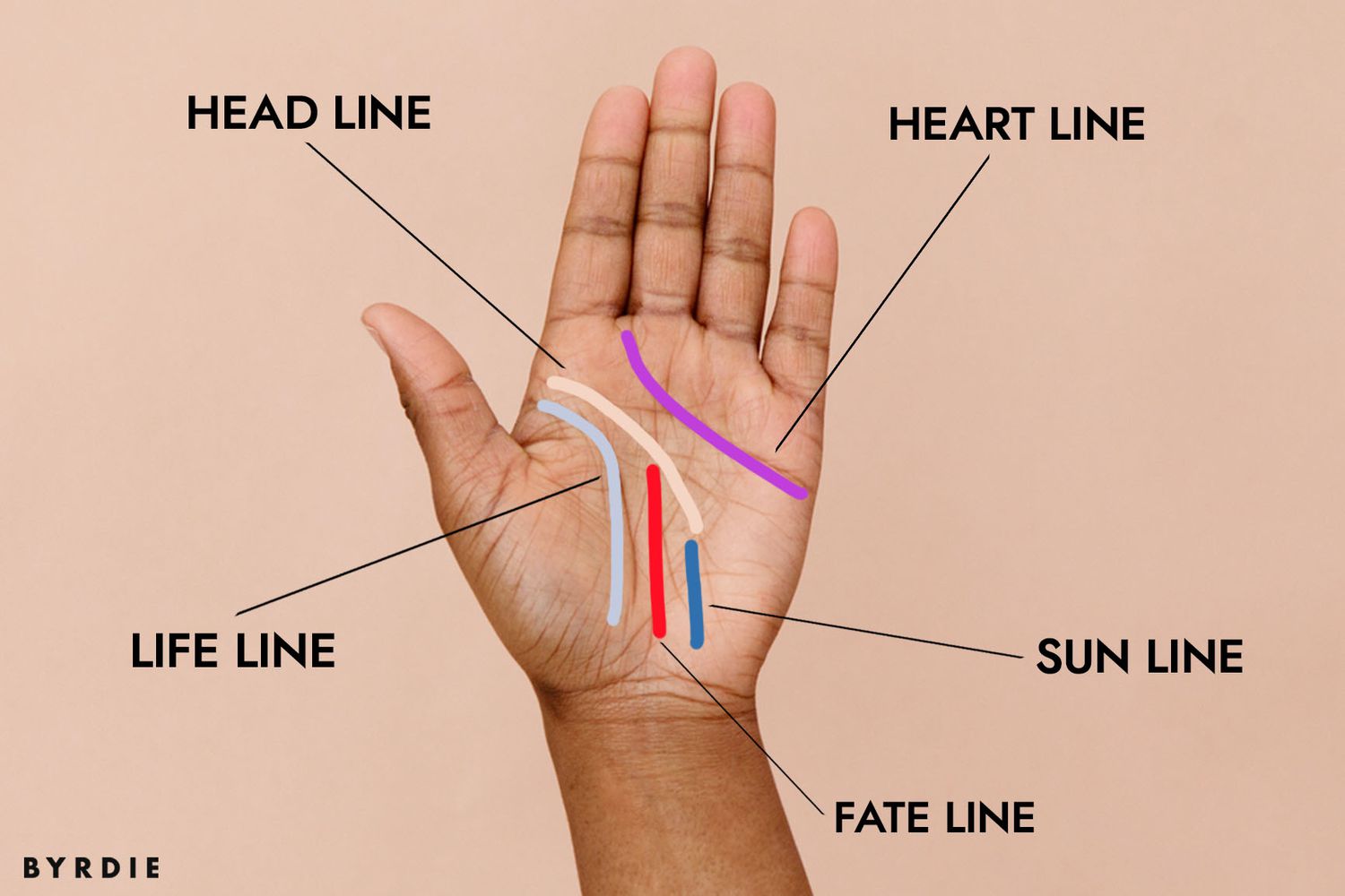 این خط از بین انگشت شست و اشاره شروع می شود و به سمت پایین و مچ می رود و زیر شست تمام می شود. این خط کیفیت تجربیاتی را که یک فرد در طول زندگیش بدست آورده، سلامت عاطفی و جسمی اش را نشان می دهد.