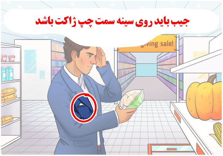 جیب باید روی سینه سمت چپ ژاکت باشد.