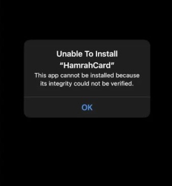 کاربران اپلیکیشن همراه کارت از شب گذشته با پیام خطایی در دستگاههای خود مواجه شدهاند که اعلام میکند «این اپلیکیشن دیگر دردسترس نیست». با مراجعه به منو تنظیمات متوجه میشوید پروفایل اپلیکیشن همراه کارت حذف شده است و امکان نصب مجدد آن وجود ندارد.