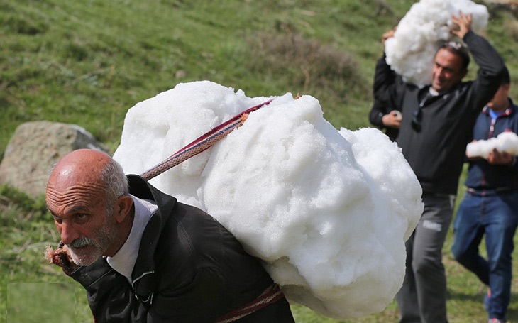 مردان نیز در این روز مشغول کارهایی در دامنه کوههای روستا هستند، آنها به محلی به نام «ورف چال» میروند. ورف چال محلی است در نزدیکی روستای آب اسک که در قرن نهم، چاهی عمیق برای جمعآوری برف در نیمه دوم سال در آن حفر شده. مردان روستای آب اسک نیز به دامنههای کوهها میروند تا با جمعآوری برفهای باقیمانده از زمستان و انبار کردن آنها در این چاه، در تابستان که گوسفندهای خود را برای چرا به دامنه این کوهها میآورند، آب برای آشامیدن داشته باشند.