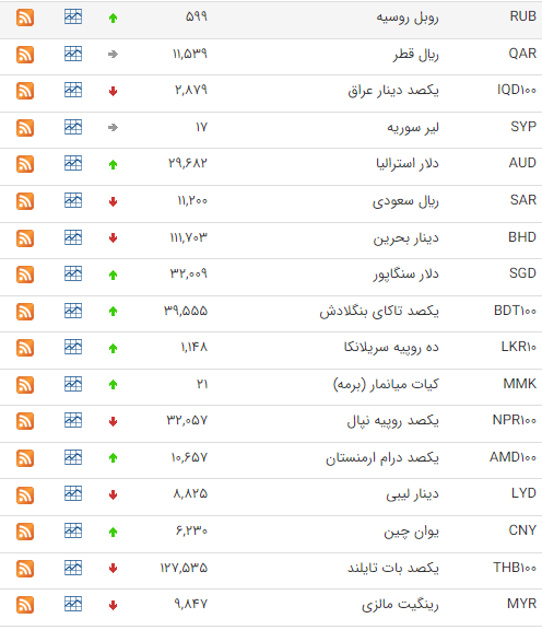 نرخ رسمی درهم امارات متحده عربی، ریال قطر و لیر سوریه هم بدون تغییر باقی ماند.