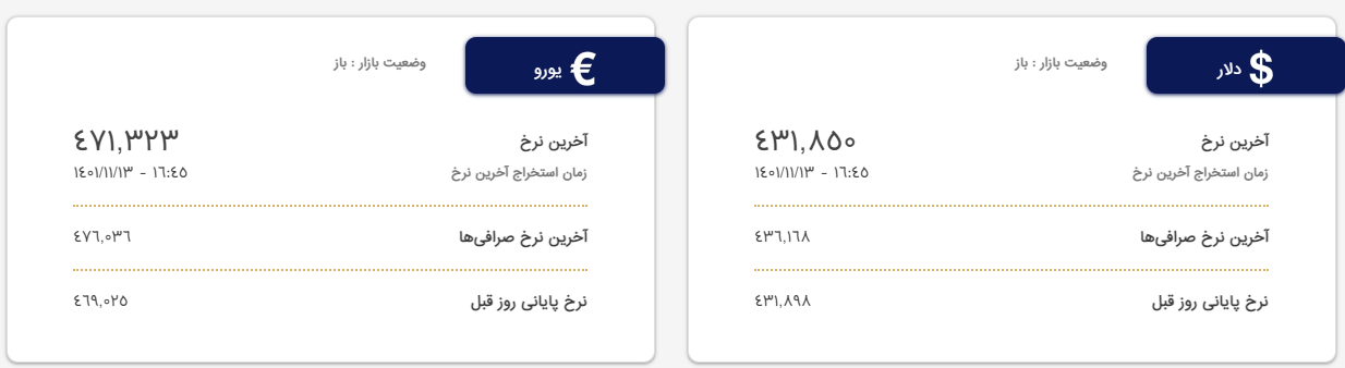 طبق اعلام بانک مرکزی، از روز 1401/11/04 کلیه صرافیها مجازند نسبت به فروش ارز بهصورت اسکناس با نرخ منتشرشده تحت عنوان "آخرین نرخ صرافیها" در سایت مدیریت بازار متشکل معاملات ارز ایران بهآدرس www.ice.ir اقدام نمایند.