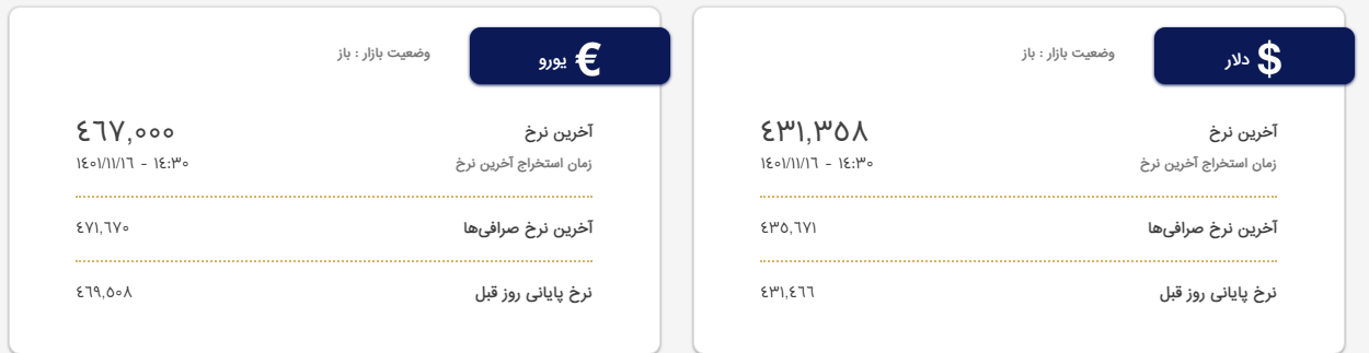 طبق اعلام بانک مرکزی، از روز 1401/11/04 کلیه صرافی‌ها مجازند نسبت به فروش ارز به‌صورت اسکناس با نرخ منتشرشده تحت عنوان "آخرین نرخ صرافی‌ها" در سایت مدیریت بازار متشکل معاملات ارز ایران به‌آدرس www.ice.ir اقدام نمایند.