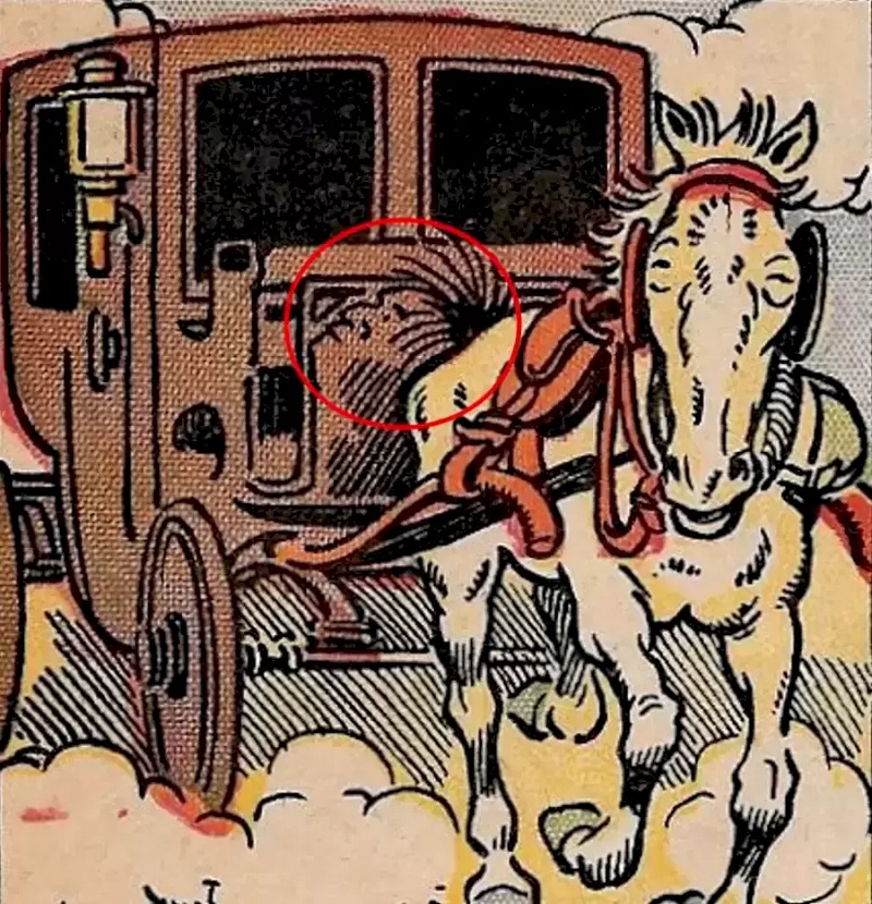 صورت کالسکه سوار در مرکز تصویر، روی کالسکه پنهان شده است. به تصویر زیر نگاه کنید.