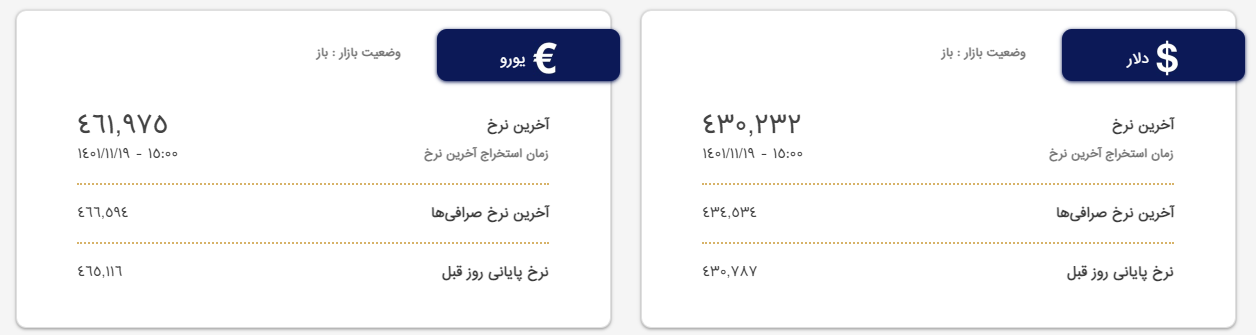 طبق اعلام بانک مرکزی، از روز 1401/11/04 کلیه صرافیها مجازند نسبت به فروش ارز بهصورت اسکناس با نرخ منتشرشده تحت عنوان "آخرین نرخ صرافیها" در سایت مدیریت بازار متشکل معاملات ارز ایران بهآدرس www.ice.ir اقدام نمایند.