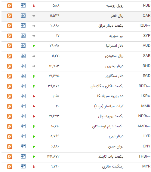 هر یوان چین نیز ۴۱ هزار و ۵۹۵ ریال خریداری و ۴۱ هزار و ۹۷۳ ریال به فروش رسید.