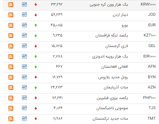 بانک مرکزی امروز پنج شنبه، نرخ رسمی ۴۶ ارز را اعلام کرد که بر اساس آن نرخ ۲۲ ارز افزایش و نرخ ۱۷ ارز کاهش یافت، نرخ باقی ارزها ثابت ماند.