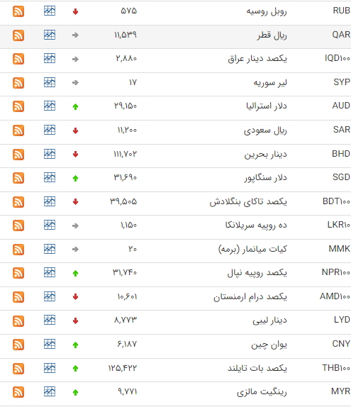 نرخ رسمی درهم امارات متحده عربی، ریال قطر و لیر سوریه هم بدون تغییر باقی ماند.