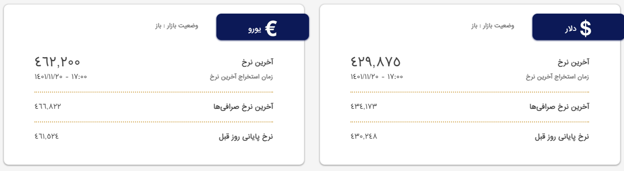 طبق اعلام بانک مرکزی، از روز 1401/11/04 کلیه صرافیها مجازند نسبت به فروش ارز بهصورت اسکناس با نرخ منتشرشده تحت عنوان "آخرین نرخ صرافیها" در سایت مدیریت بازار متشکل معاملات ارز ایران بهآدرس www.ice.ir اقدام نمایند.