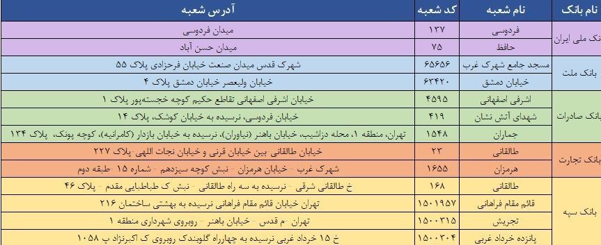 طبق اعلام روابط عمومی بانک مرکزی، متقاضیان می‌توانند برای خرید ارز در سرفصل تأمین نیاز‌های ضروری با همراه داشتن اصل کارت ملی به شعب منتخب بانک‌های مذکور به شرح جدول زیر مراجعه نموده و اقدام به خرید ارز تا سقف 5000 یورو نمایند.