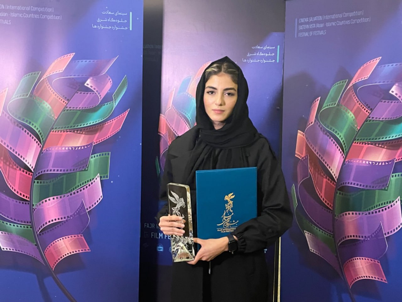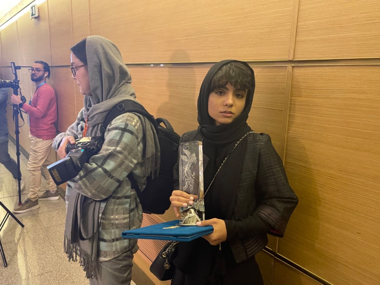 مولایی پس از دریافت جایزه گفت: با تشکر از داوران، این جایزه را به احترام همه دختران و زنان ایران به مادرم تقدیم میکنم.