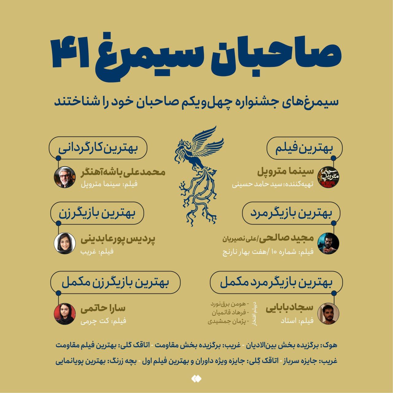 برندگان سیمرغ چهل و یکمین جشنواره فیلم فجر را افراد ذیل تشکیل میدهند:
