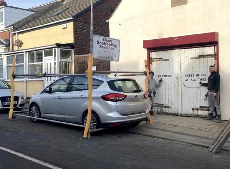 اما این اتفاق برای چند راننده به واقعیت پیوست. کالین شاو، مالک یک ساختمان در انگلستان، وقتی که از پارک کردن ماشینهای بیرون در ورودی انبارش خسته شد، وسایل نقلیه ای که روبروی در ورودیش پارک میکردند را با داربست بست.