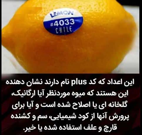 این اعداد که در تصویر مشاهده میکنید plus نام دارد و نشاندهنده این هستند که میوه موردنظر ارگانیک، گلخانهای یا اصلاح شده است. آیا برای پرورش آنها از کود شیمیایی، سم و کشنده قارچ و علف استفاده شده است یا نه.