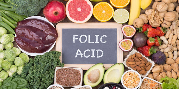 نشانه کمبود اسیدفولیک خستگی مزمن، پریشانی، بی خوابی فراموشی و گیجی هستند. منابع غذایی آن عبارتند از مخمر، لوبیا، کلم بروکلی، کاسنی، حبوبات (به خصوص نخود)، سویا، سبزی ها (مخصوصا اسفناج، کلم و بامیه)، بادام، چغندر، هویج، گردو، برنج قهوه ای و ذرت.
