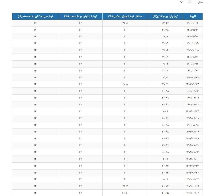 از هفته منتهی به 30 آذرماه، نرخ سود بین‌بانکی وارد کانال 21درصدی شده و تا هفته منتهی به 19 بهمن ماه در همین کانال در نوسان بود ولی از 26 بهمن ماه این نرخ رکورد جدیدی در کانال 22درصدی به ثبت رساند.