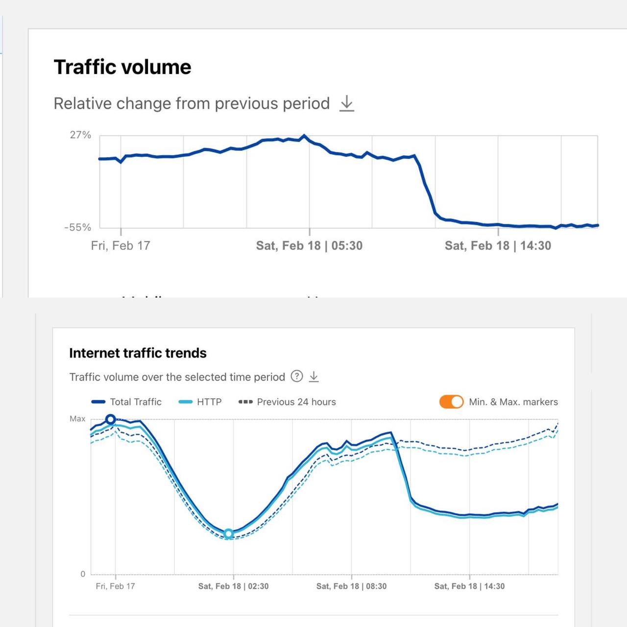 از روز گذشته رنج آیپیهای کلودفلر با اختلالهای گستردهای روبهرو شدند. این اختلال بهخوبی در نتایج رادار کلودفلر نمایان است. ترافیک کلودفلر در ایران از حدود ساعت 14 ظهر 29 بهمنماه بین ۴۵ تا ۵۵ درصد به نسبت روز قبل کاهش یافته است و اگرچه در لحظه انتشار این گزارش وضعیت بهبود اندکی داشته، اما هنوز به نسبت قبل ترافیک به حالت عادی برنگشته است.