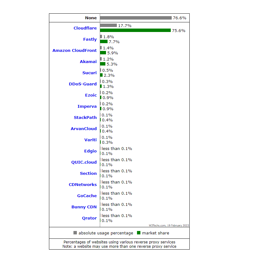 براساس آمارها، تقریباً تمامی سایتهای مهم جهان از CDN استفاده میکنند که 75.6 از این سایتها روی کلودفلر قرار دارند. ازهمینرو، هر نوع فیلترینگ یا اختلال روی آن، درواقع یک اختلال مهم روی اینترنت بهحساب میآید.