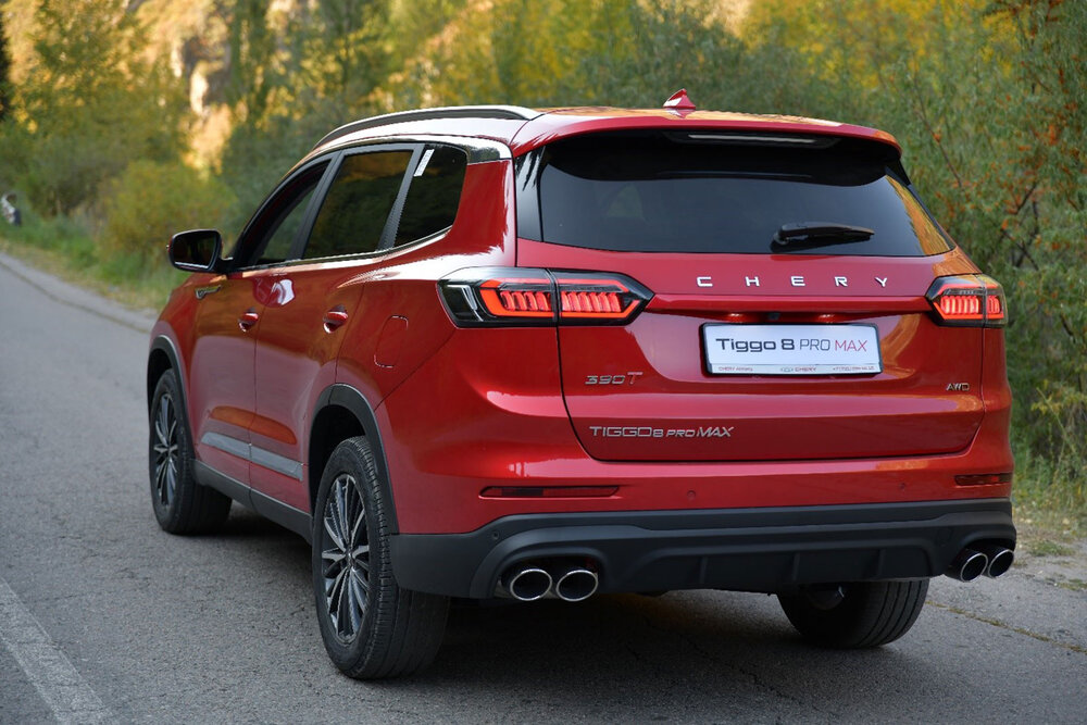 در نمای عقب،گرافیک چراغها به شکل بیرنگ درآمده و اگزوزها به شکل دوبل درآمدهاند که اسپرتتر جلوه میکند. نوشتهی طولانی Tiggo 8 Pro Max روی قسمت پایینی صندوق عقب ممکن است کمی تو ذوق بزند.