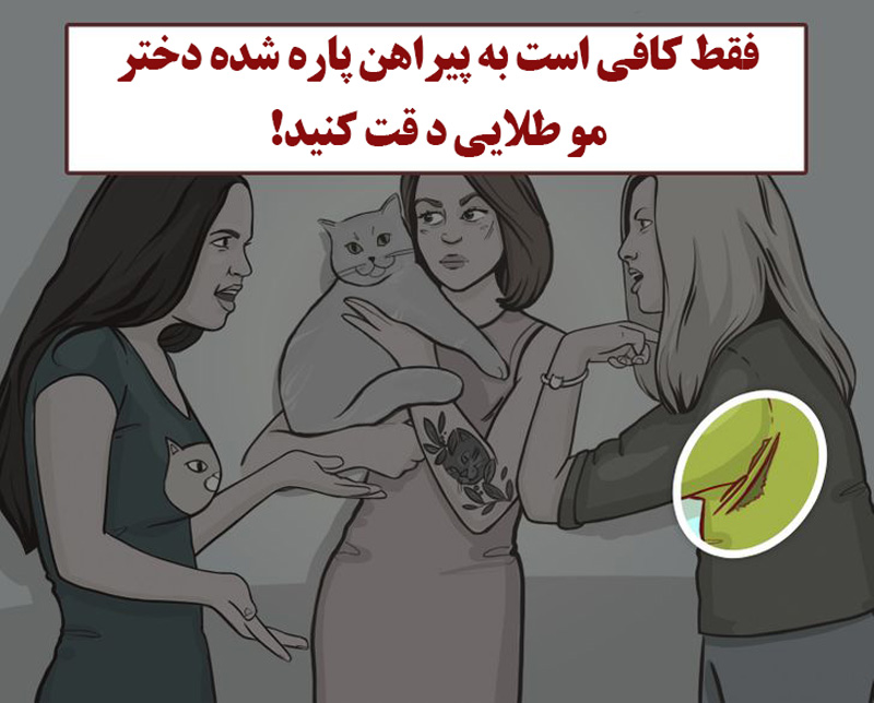 فقط کافی است به پیراهن پاره شده دختر مو طلایی دقت کنید! پس گربه متعلق به او است.