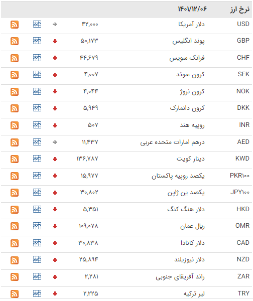 بانک مرکزی امروز شنبه، نرخ رسمی ۴۶ ارز را اعلام کرد که بر اساس آن نرخ ۵ ارز افزایش و نرخ ۳۴ ارز کاهش یافت، نرخ باقی ارز‌ها ثابت ماند.