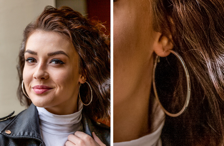 گوشواره های حلقه ای بزرگ طلایی یا نقره ای می توانند تأثیر منفی بر ظاهر داشته باشند. مشکل اصلی این گوشواره ها این است که به دلیل سنگینی، لاله های گوش را پایین می کشند. بنابراین استفاده از گوشواره های حلقه ی کوچک و سبک ظاهر مُد روزتری به شما می دهد.