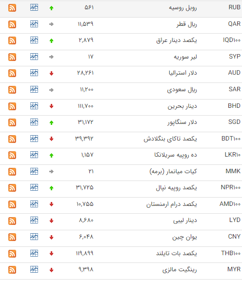 نرخ رسمی درهم امارات متحده عربی، ریال قطر و لیر سوریه هم بدون تغییر باقی ماند.