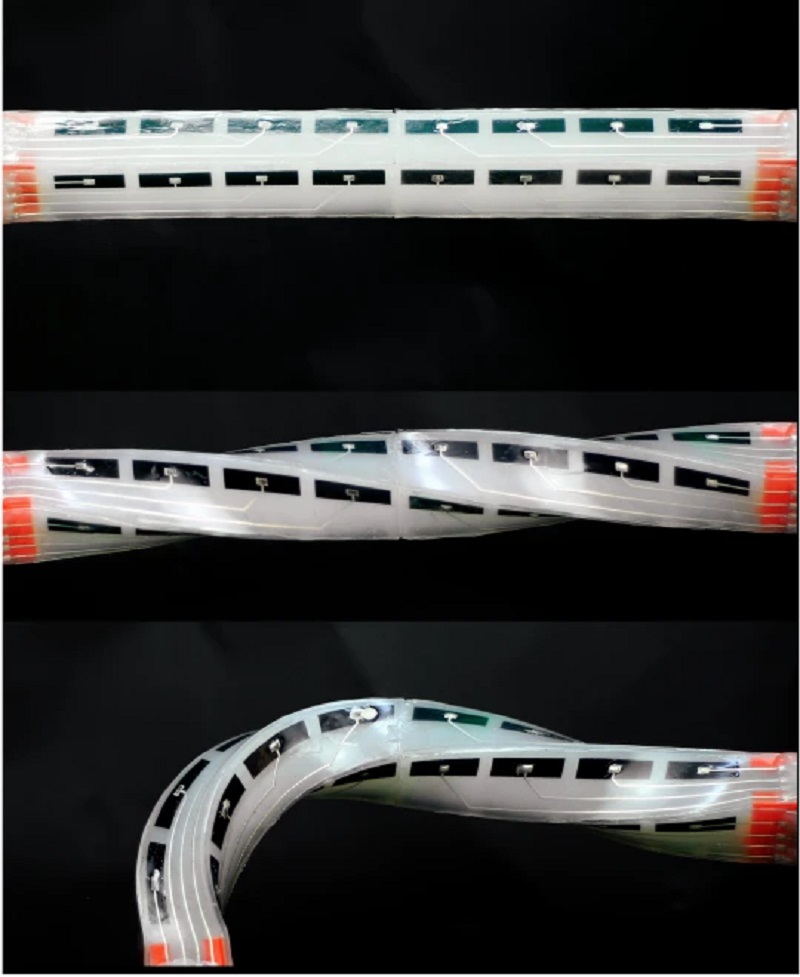 این تیم پوست الکترونیکی خود را با نصب آن بر روی یک بازوی ربات نرم آزمایش کردند. آنها دریافتند که این فناوری قادر است طیفی از حرکات پیچیده خمشی، کششی و پیچشی را در هر قسمت از دستگاه حس کند.
