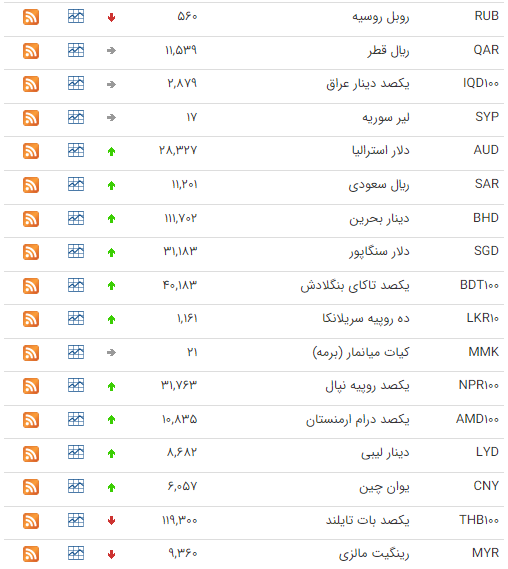 بانک مرکزی امروز چهار شنبه، نرخ رسمی ۴۶ ارز را اعلام کرد که بر اساس آن نرخ ۲۷ ارز افزایش و نرخ ۱۱ ارز کاهش یافت، نرخ باقی ارزها ثابت ماند.