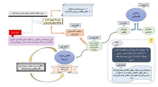 بنابراین برای جمعبندی میتوان گفت که در شرایطی که فضای جهانی سبب شده بود تا دستی خارج از چهارچوب اقتصاد ایران تقاضای درهم را بالا ببرد، اتخاذ سیاستی تحت عنوان ارز توافقی و عرضه ارزهای باکیفیت در بازار آزاد سبب اختلال در سوی عرضه را به همراه داشت و برآیند اخلال در سمت عرضه و تقاضا و این خطای تکنیکی سبب شد تا در کنار سایر عوامل بنیادی و ریشهای اقتصاد ایران، نرخ ارز از 33 هزار تومان تا 60 هزار رشد کند.