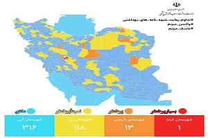 طبق اعلام روابط عمومی وزارت بهداشت تعداد شهرهای نارنجی ۱۳ و قرمز ۱ شهر است.