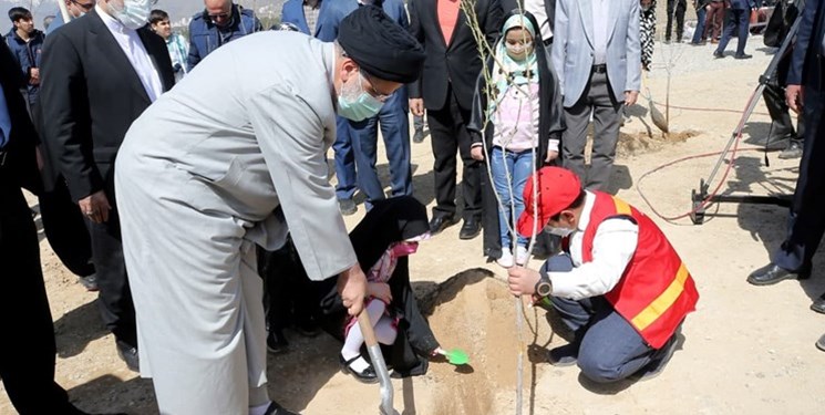 رئیسی در این مراسم یک نهال غرس کرد.