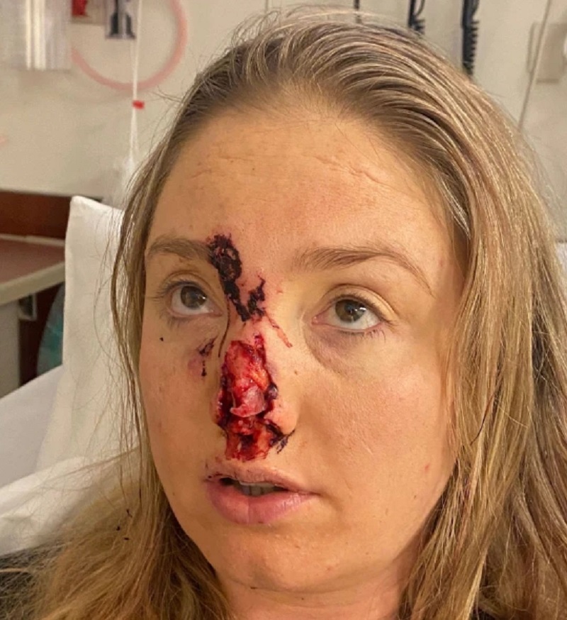 سپتوم و غضروف او توسط سگ پاره شده بود، اما پل و بیرون سوراخ های بینی او دست نخورده باقی مانده بود.