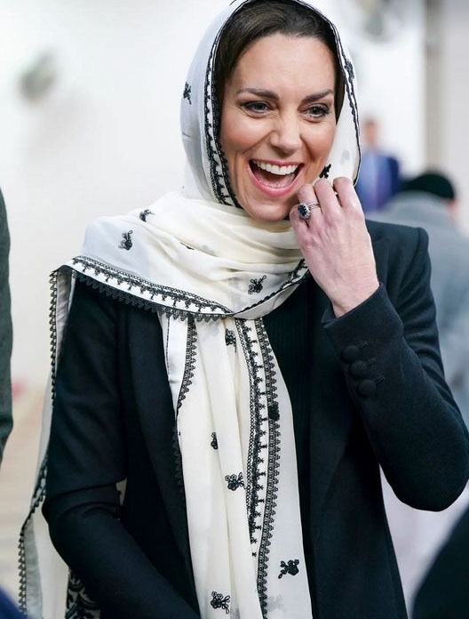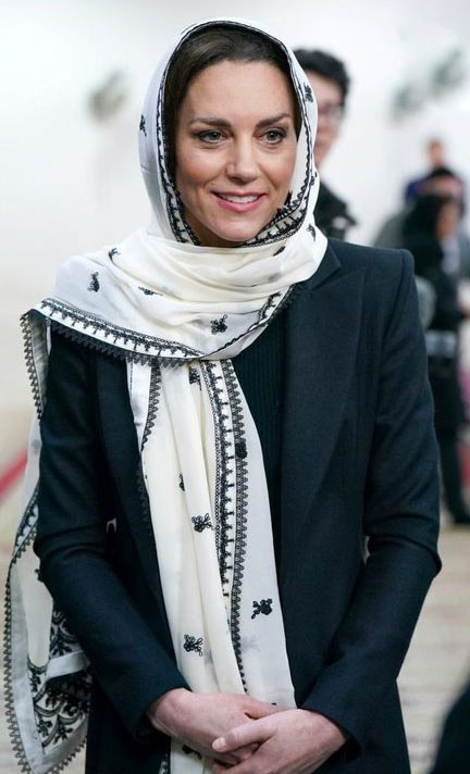 شاهدخت کیت میدلتون همسر شاهزاده ویلیام، ولیعهد انگلیس روز پنجشنبه از یکی از مراکز اسلامی لندن بازدید کرد. کیت میدلتون در این بازدید به منظور رعایت موازین اسلامی با سر کردن حجاب وارد این مرکز شد. کیت و ویلیام هنگام بازدید از مرکز اسلامی منطقه هیز در لندن از کسانی که در هفتههای اخیر اقدام به جمعآوری کمکهای پشردوستانهای و پول برای کمک به زلزلهزدگان سوریه و ترکیه کردهاند تشکر کردند. برای این مناسبت، کیت روسری سیاه و سفید برند پاکستانی Élan به سر داشت. انتشار تصاویر شاهدخت کیت میدلتون با حجاب اسلامی بسیار خبرساز شد و مورد تحسین بسیاری از کاربران در شبکههای اجتماعی قرار گرفته است.