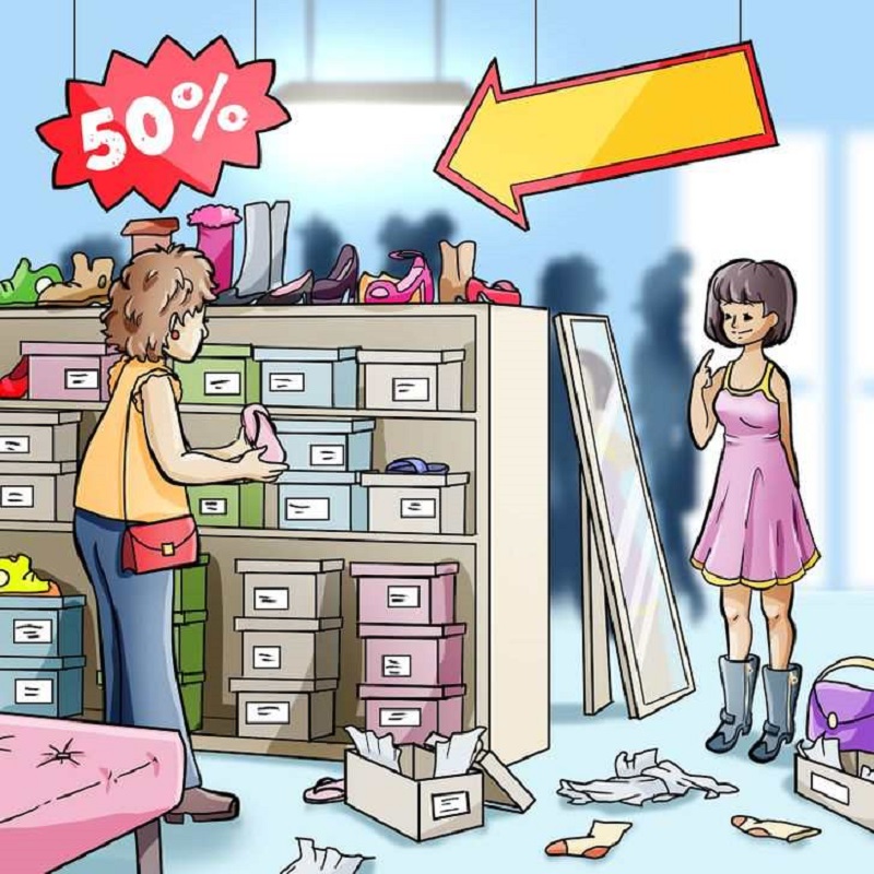 این بازی فکری فقط برای افرادی است که در حل معماها عالی هستند. در این پازل تصویری، یک اشتباه بزرگ وجود دارد. طبق معمول، برای این بازی فکری نیز محدودیت زمانی در نظر گرفته شده و شما فقط ۵ ثانیه فرصت دارید تا بگویید که عکس دخترانی که در بازار خرید می کنند چه مشکلی دارد.