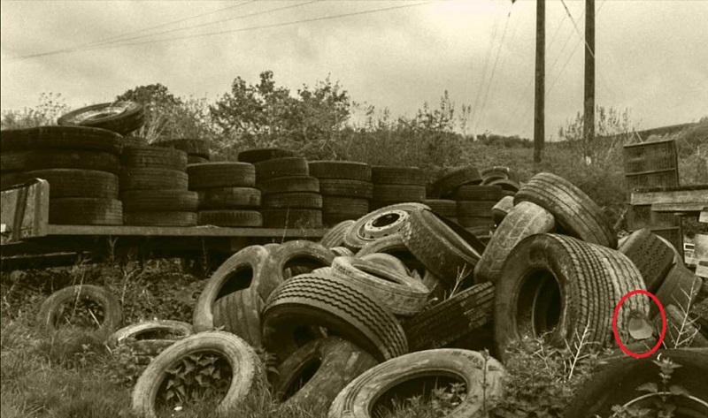 پرنده را می توانید در سمت راست تصویر ببینید که بالای یک لاستیک نشسته است. به تصویر زیر نگاه کنید.