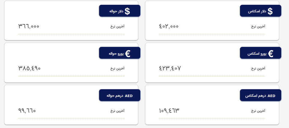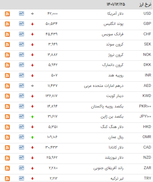 بانک مرکزی امروز نرخ هر دلار را ۴۲ هزار ریال، پوند را ۵۰ هزار و ۵۳۴ ریال و یورو را ۴۴ هزار و ۲۳۷ ریال اعلام کرد.