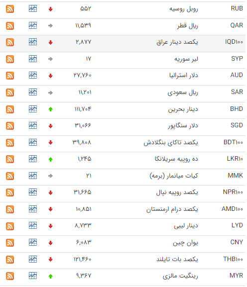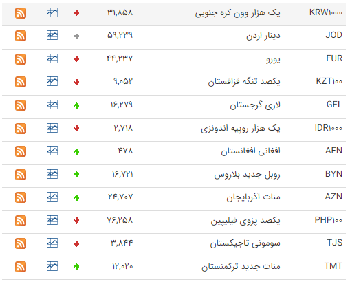 بانک مرکزی امروز، پنجشنبه (۲۵ اسفند)، نرخ رسمی ۴۶ ارز را اعلام کرد که بر اساس آن نرخ ۱۰ ارز افزایش و نرخ ۲۹ ارز کاهش یافت، نرخ باقی ارزها ثابت ماند.