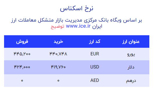 از 8 اسفندماه علاوه بر قیمت‌های اسکناس و حواله دلار، قیمت اسکناس و حواله یورو و درهم نیز در سایت بازار متشکل درج می‌شود؛ بر همین اساس نیز نرخ اسکناس یورو 42 هزار و340 تومان، و نرخ حواله یورو 38 هزار و 549 تومان اعلام شده است.