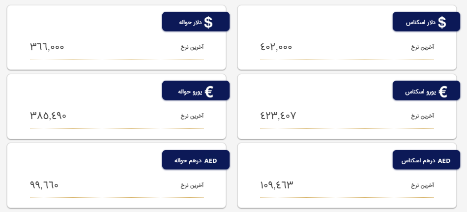 قیمت انواع ارز در مرکز مبادله ایران به شرح زیر است.بر این اساس، هر دلار آمریکا (به صورت اسکناس) ۴۰ هزار و ۲۰۰ تومان قیمتگذاری شد.